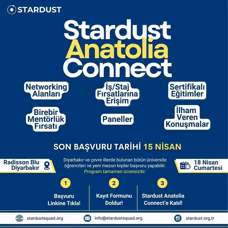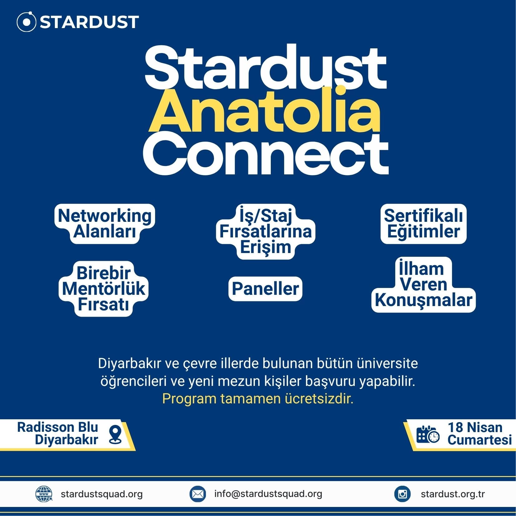 Stardust olarak, 18 Nisan Cumartesi gerçekleşecek Stardust Anatolia Connect programında gençlerle bir araya geliyoruz.